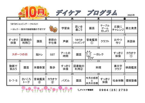 また患者様とスタッフが1月に1度ミーティングを行いプログラムの内容、1日レクリエーションの内容を協議し、決定しております。